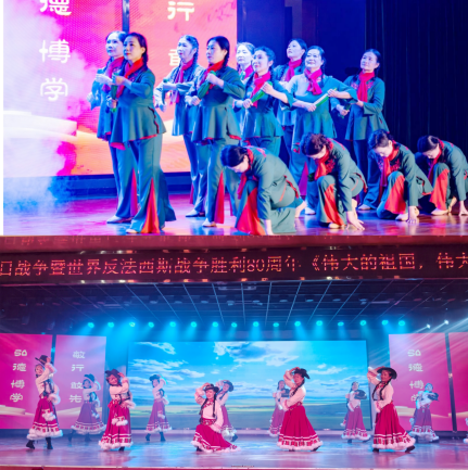 退休教师们虽青丝染霜,却初心如磐,她们以舞蹈为桥,将岁月沉淀的家国情怀与育人初心融入每一个舞姿,用实际行动传承红色基因。展演中,老教师们的精彩表演与音乐学院舞蹈系师生的演绎交相辉映,老中青同台共舞,不仅是红色精神的接力传承,更是初心使命的薪火相传。老一辈教育工作者用热爱与坚守为青年学子树立榜样,引导青年在红色艺术熏陶中感悟初心、勇毅前行,让红色血脉代代相传,让爱国情怀根植心间。